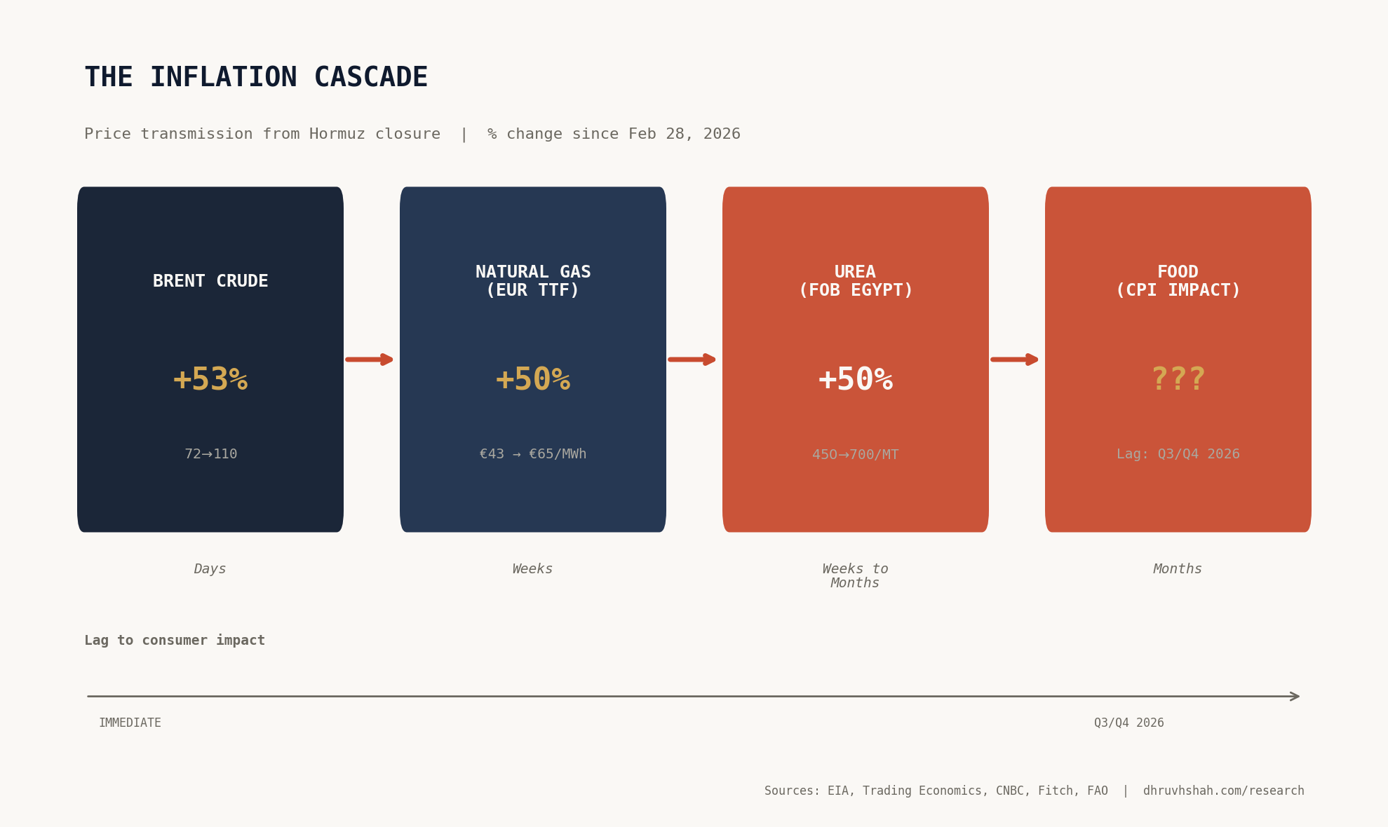 Fertilizer has none of that. No strategic urea reserve. No ammonia pipeline to a western port. The Gulf accounts for roughly 43% of seaborne urea exports, and every ton ships through Hormuz. FOB granular urea out of Egypt has jumped from around $450 per metric ton before the war to roughly $700 today. That is not a spike. That is a regime change.